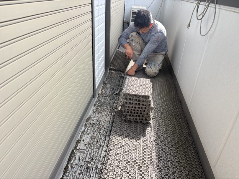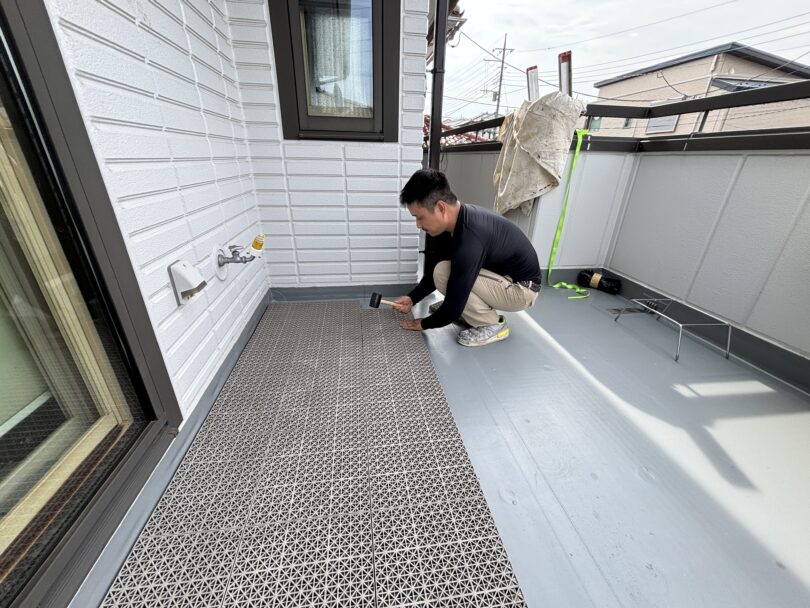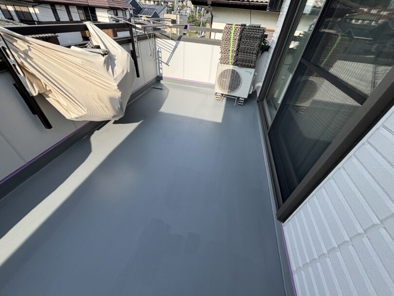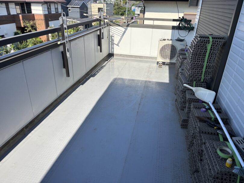 多くは屋上に使われる塩ビシート防水ですが、ハイクラスなハウスメーカーの戸建てではベランダにも使用されています。