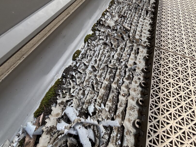 トップコートの膜が薄れてきたり、退色・ひび割れが見えてきたら塗り替えのサイン。放置するとシート自体の交換が必要になり、工事費用が一気に高額になってしまいます。