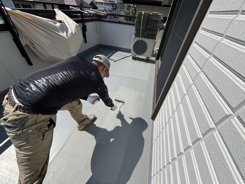 つまり、塩ビシート防水を「長持ち」させるための仕上げ塗装なのです。