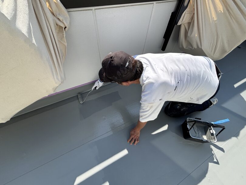 マルミ美装工芸では、塩ビシート防水の点検からトップコートの塗装まで対応しています。